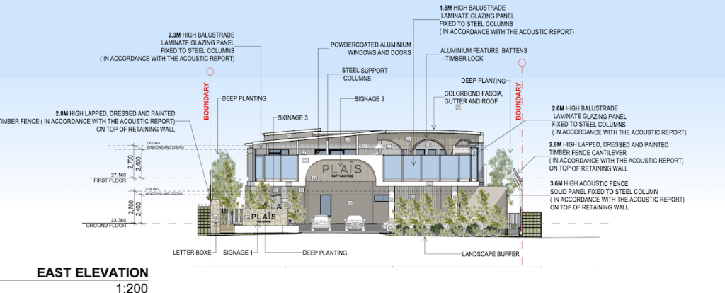 The application acknowledges these conditions, with site analysis mapping surrounding noise corridors and wind patterns. To manage this, the plans include multiple layers of acoustic fencing and barriers around the property.